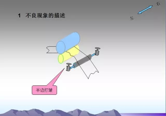 過(guò)輥之間平行度超差會(huì)造成箔帶打皺,須仔細(xì)檢查究竟是垂直投影面不平行還是水平面不平行,然后加以調(diào)整