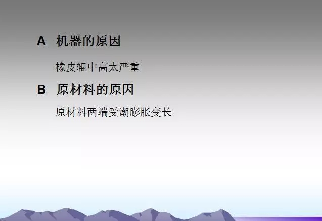 背輥及各過(guò)輥粘有異物或使用過(guò)多的水。需要經(jīng)常檢查,及時(shí)發(fā)現(xiàn)并清理,并注意不要損傷輥面。